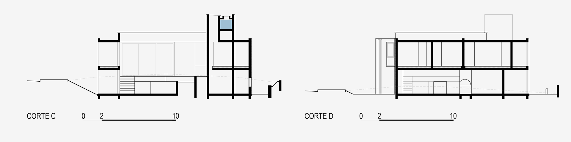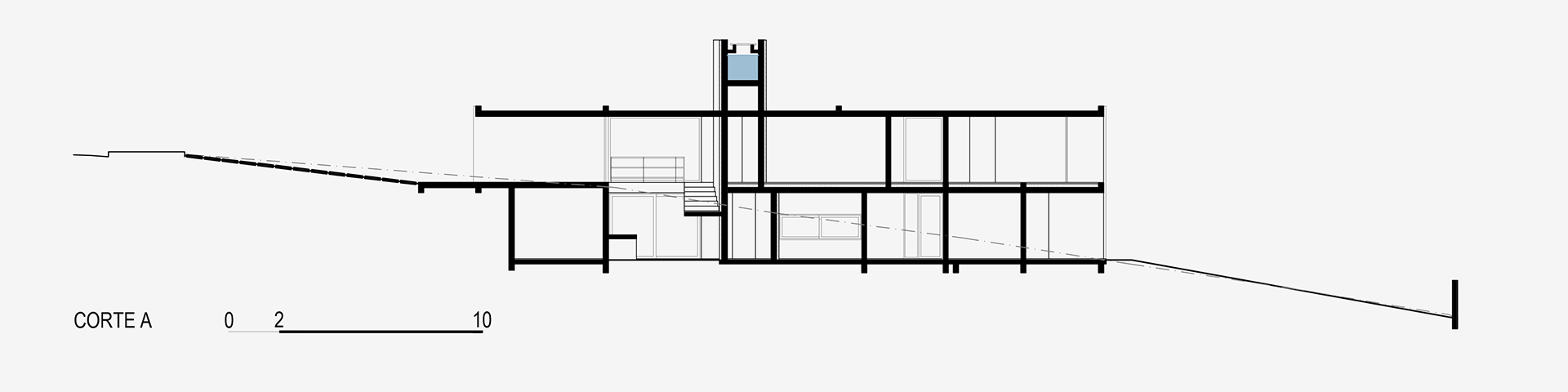 A partir da inclinação natural do terreno, optou-se por desenvolver a casa em meios níveis. Essa estratégia permite uma melhor adaptação à topografia, favorece a relação entre interior e exterior e cria diferentes graus de privacidade e integração, sempre permeados pela presença marcante da vegetação.