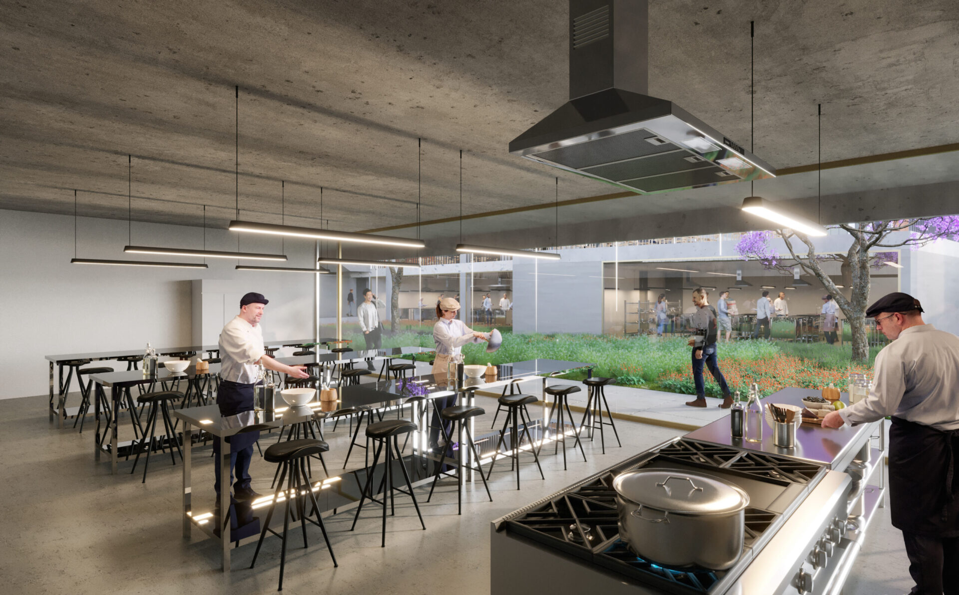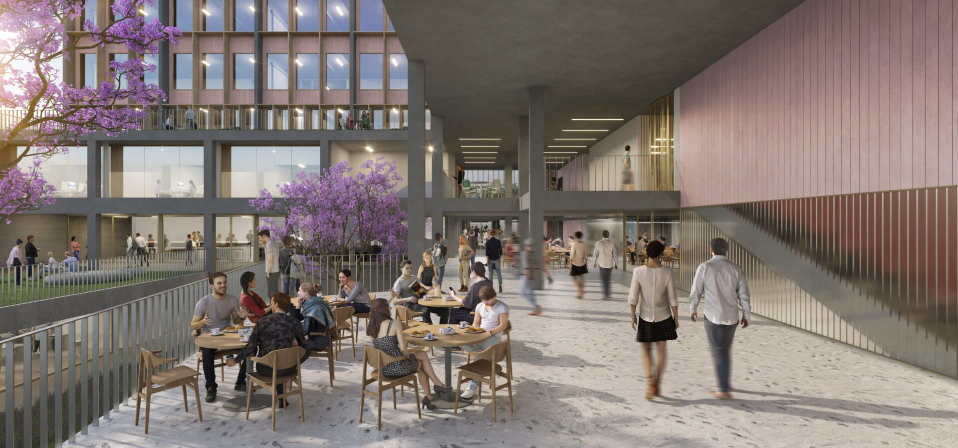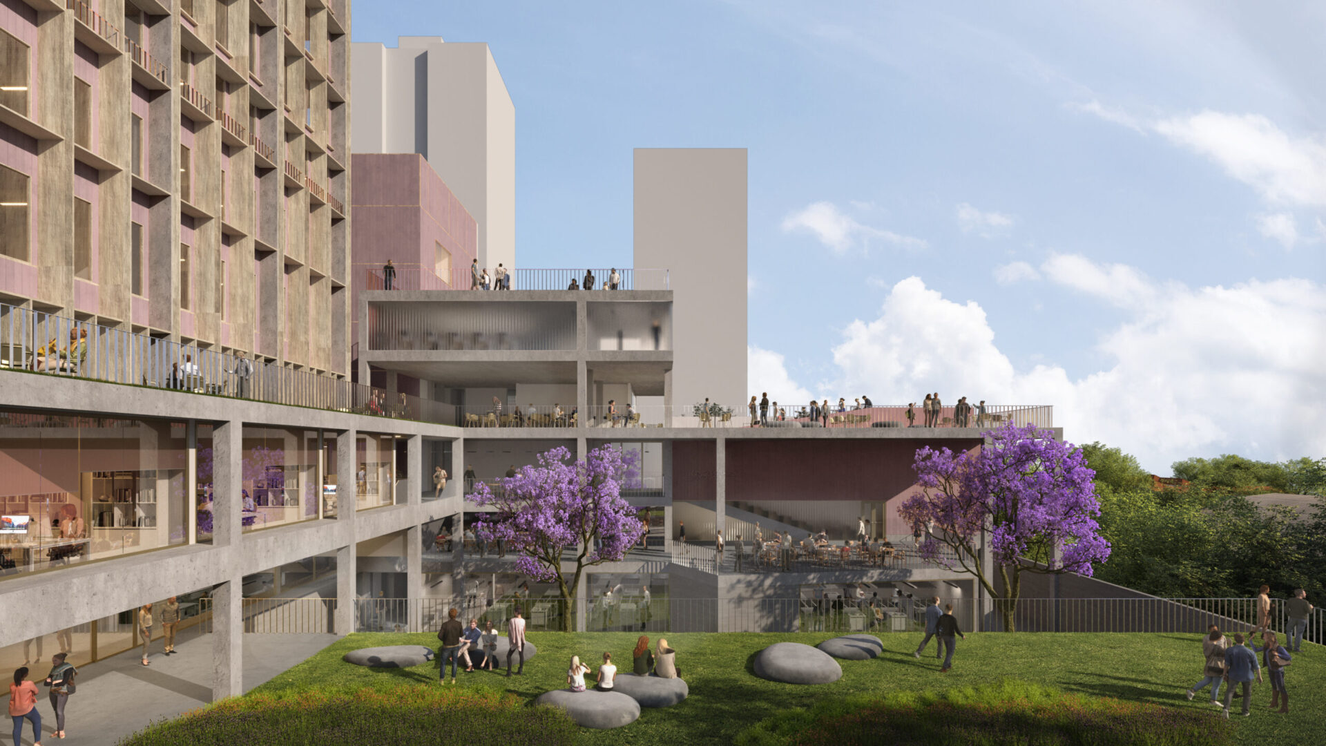A análise criteriosa do conjunto edificado existente levou à proposta de um corte em parte da extensão do bloco 1, uma incisão perpendicular à rua de caráter urbano e não apenas arquitetônico, que cria a conexão do espaço público com o interior do lote.
